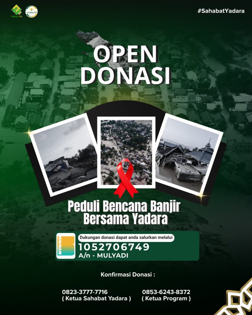 Dengan izin Allah yang Maha kuasa. Saya Tgk. Mulyadi Marzuki (Ketua Program Yadara) hari ini : Senin 15-Desember-2025 mengajak kepada seluruh pendengar Radio yadara 92,8 Fm (SAHABAT YADARA 92,8 FM) Donatur Infaq Radio Dakwah Yadara, Pengikut Media Yadara Tv dan saudaraku sekalian untuk sama-sama kita berpartisipasi membantu saudara kita yang terkena banjir.